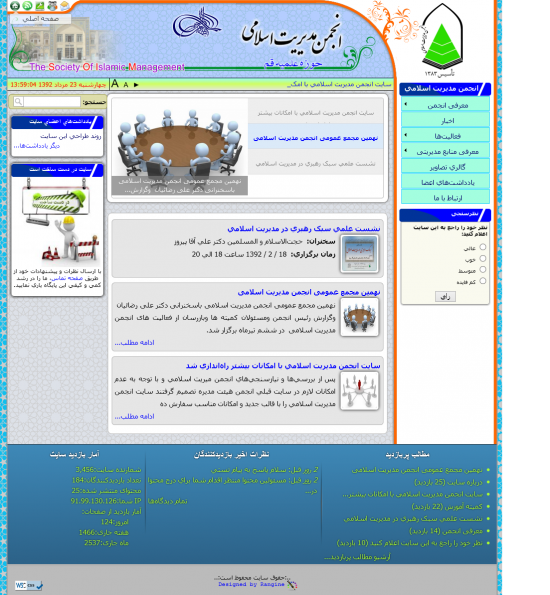 اگر خواننده اين سطور از سايت و طراحي سايت اطلاعاتي داشته باشد بايد بگويم اين سايت با سيستم مديريت محتواي دروپال (Drupal) نسخه 6 طراحي و راهاندازي شده است. اين سيستم مديريت محتوا با زبان طراحي وب php نوشته شده است. براي راهاندازي اين سايت ابتدا طرح اوليه گرافيکي سايت به رؤيت اعضاي هيئت مديره انجمن مديريت اسلامي رسيد و پس از اظهار نظر و پيشنهادات ايشان اين طرح گرافيکي تبديل به html و سپس تبديل به قالبي براي دروپال شد. تبديل يک تصوير به قالب html حداقل نياز به دانش و تجربه در زبان html و css دارد. در اين سايت از تکنولوژي Javascript و JQuery نيز فراوان استفاده شده است. به عنوان مثال: